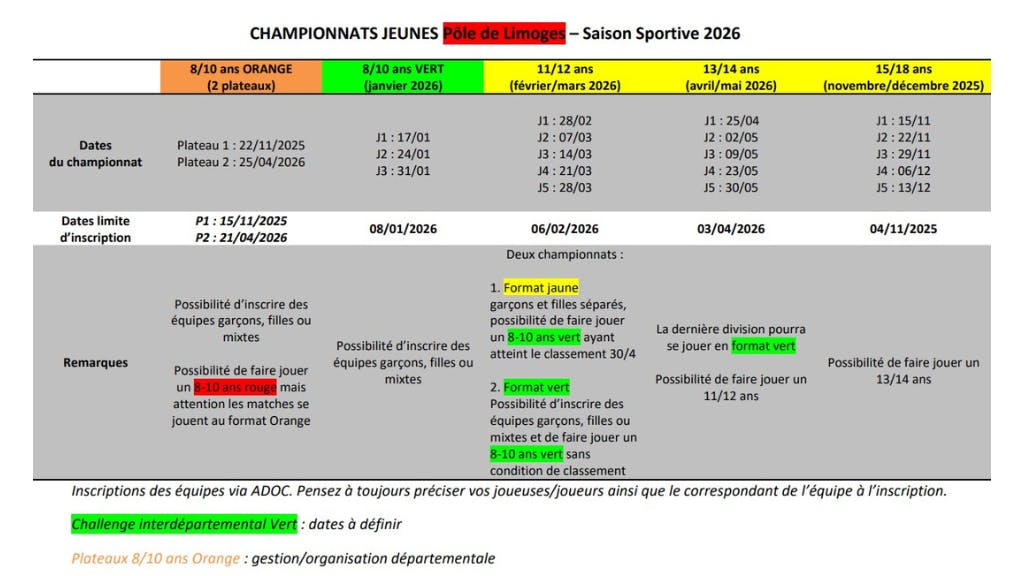 Calendrier Championnats Jeunes 2026